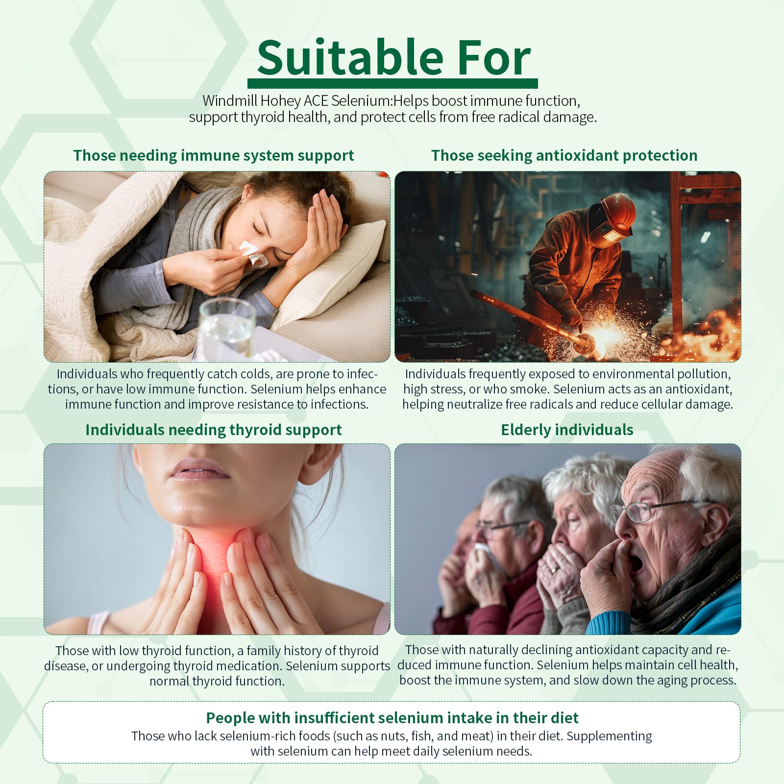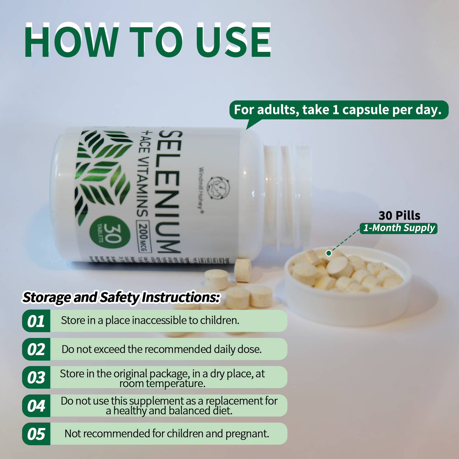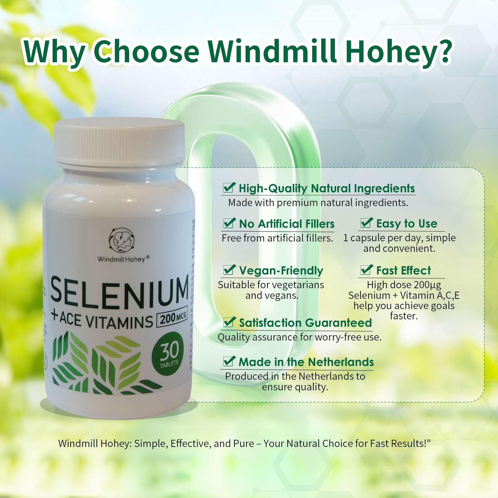 Windmill Hohey ACE Selenium:Helps boost immune function, support thyroid health, and protect cells from free radical damage.