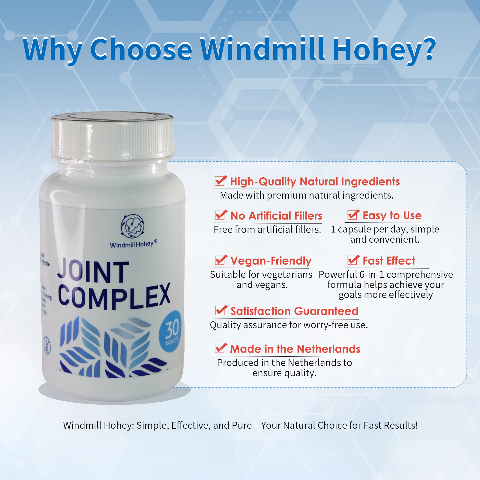 Our advanced joint support not only provides powerful anti-inflammatory action, but also promotes cartilage regeneration. With improved absorption and effectiveness, you can enjoy the many benefits of this supplement. Whether you suffer from joint pain or simply want to keep your joints healthy, our Joint Formula is the ideal solution. Trust the power of glucosamine, chondroitin, and MSM to support your joints and improve your mobility. Don’t wait any longer – invest in your joint health with our highly effective joint formula. Order today and experience the benefits of strong joint support!